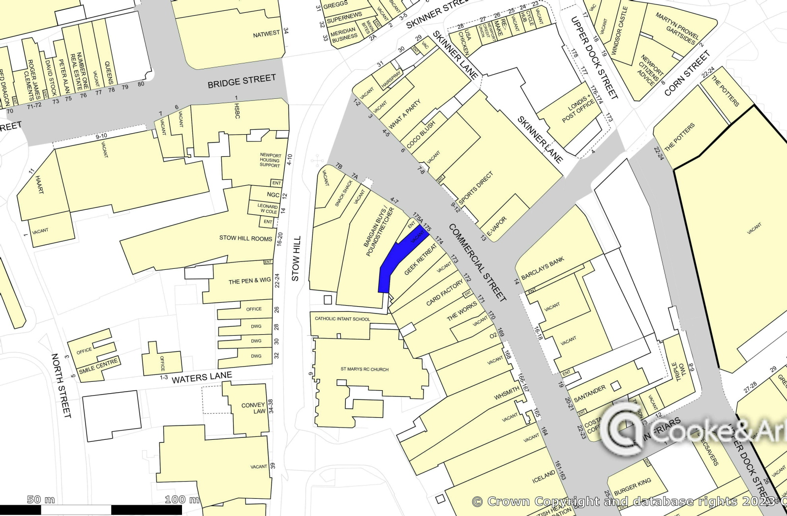 The property is located in a prime position on the pedestrianized Commercial Street, close to junction of Commercial Street and Stow Hill. Occupiers in the nearby vicinity are Sports Direct, Card Factory, Barclays Bank, HSBC, Mcdonalds and The Works.