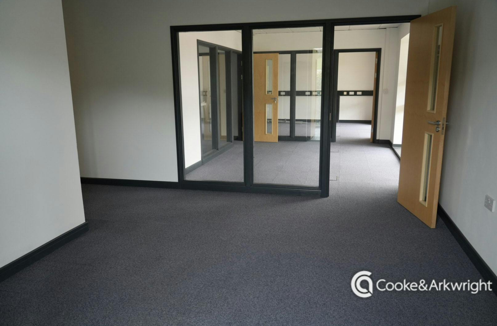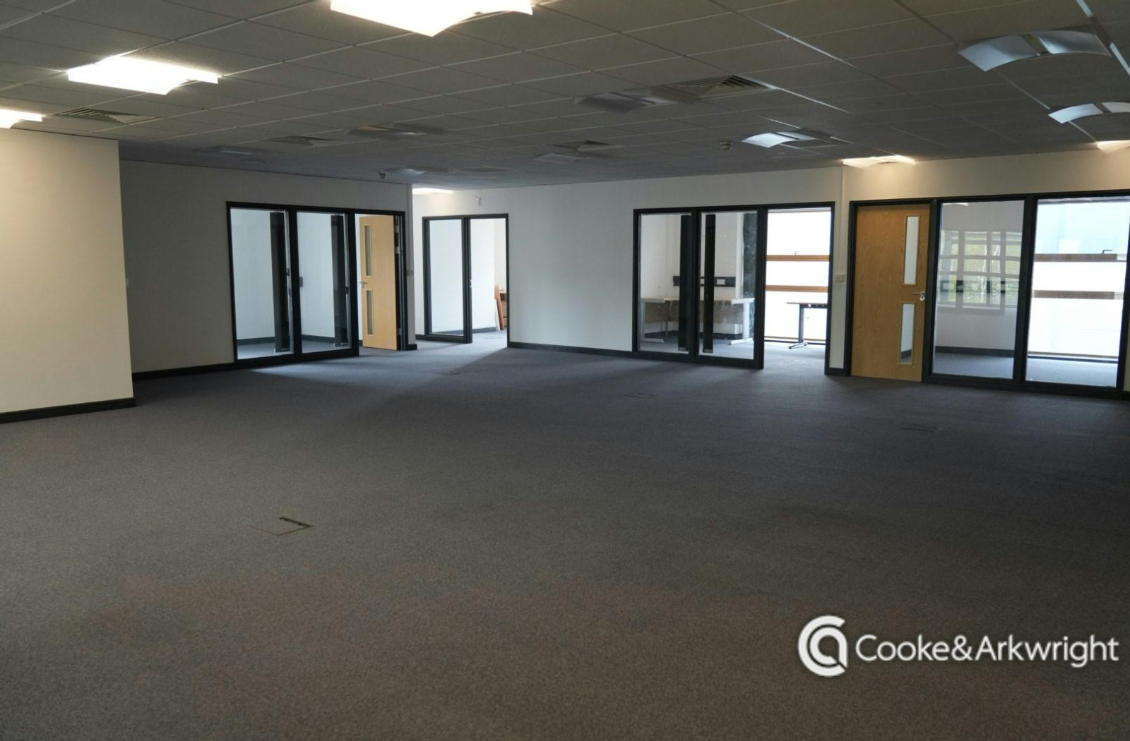 The properties are modern two storey office buildings with a glazed entrance and reception areas. Access to the first floors is via a lift and stairwell, which leads to the self-contained first floor accommodation. The offices are of a high specification fit-out and include: self-contained WCs and kitchen facilities. The suites can be sub-divided to create smaller offices, with a large open plan area in the centre.