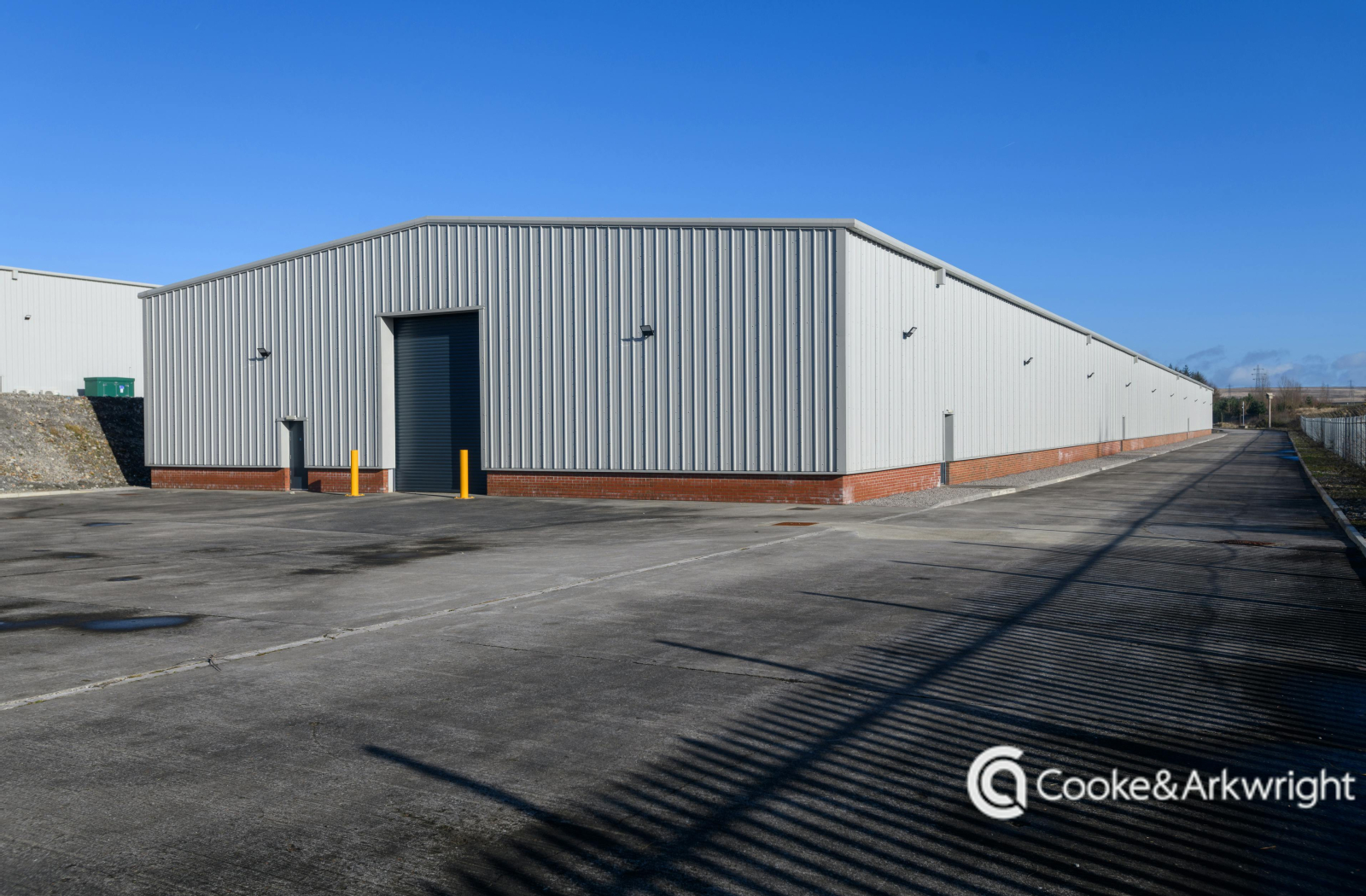 The thoroughly refurbished unit provides excellent space suitable for a range of uses including manufacturing. The building provides attractive glazed open plan office accommodation across ground and first floor at the front of the building. Externally there is a substantial yard space and parking provision suitable for the installation of sustainable amenities such as Electric Vehicle (EV) charging points. Warehouse -7.5m clear internal height (main warehouse) - Floor slab - minimum designed Imposed Load of 15kN/m2 - 10 level loading access doors - 3 phase power - 500 KVA available - Water provision - 50mm Mains - Gas provision - 80mm PN16 Annual 2,500,00kWh - Rear canopy Offices - 2 storey offices (including showroom& shower/ changing) - Double height showroom area with potential for mezzanine - Raised access floors on first floor accommodation - HVAC system - 410kg capacity platform lift to first floor - 10 staff toilets External - Secure yard - 24 hour access although shared - Security lighting – office car park / service yard - 119 dedicated car parking spaces - Potential for the installation of Electric Vehicle (EV) charging points