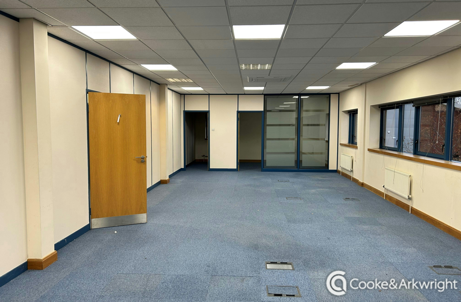 The property comprises a detached self-contained two-storey office building with car parking to the front. The specification includes: Air Conditioning, W.C, kitchen and shower facilities, fob entry access, suspended ceilings with recessed lighting, gas central heating, carpet tiles and raised access floors with floor boxes.